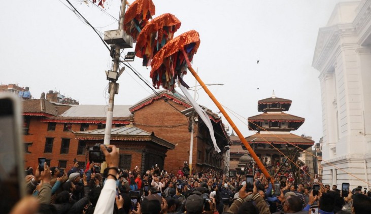 काठमाडौंः काठमाडौँको वसन्तपुरमा होलीको चीर ठड्याइएको छ। मंगलबार बिहान रंगीविरंगी कपडाहरूको ध्वजापताकासहितको तीन खण्डे चीर ठड्याइएको हो।